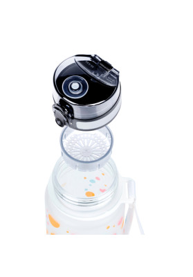 Uzamykatelné víčko nepropustí ani kapku nápoje a zaručuje jednoduché a intuitivní používání. Součástí láhve je i sítko, díky kterému můžete láhev použít i na limonády s ovocem nebo čaj (materiál je vhodný i pro horké nápoje). K láhvi je připevněné také poutko pro pohodlné nošení v ruce.