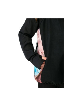 Bunda má prodloužený střih, který chrání záda před ofouknutím, a široké náplety s dírou na palec, díky nimž rukávy dobře drží a zahřejí i část ruky. Prostorná kapuce se stahováním ochrání před deštěm a větrem, zatímco skryté boční kapsy pojmou kapesník, rukavice nebo nasbírané poklady z přírody. Design doplňují originální grafické prvky umístěné na jednom rukávu a boku.