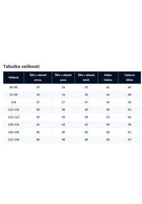 Doporučení se může mírně lišit podle postavy dítěte – vždy doporučujeme zkontrolovat velikostní tabulku.
