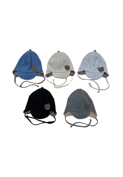 Chlapecká čepice s nášivkou, vázací! 95 % bavlna+ 5 % elastan.