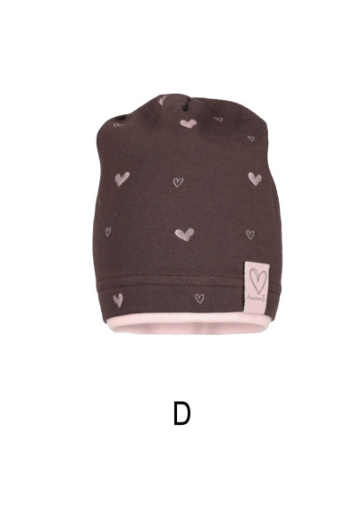 Dívčí celoroční čepice s potiskem srdíček.