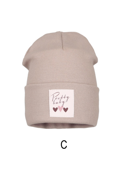 Dívčí celoroční jednobarevná čepice s nášivkou.