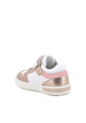 Dívčí trendy kožené tenisky. Lehoučká podešev, zapínání na suchý zip. Krásné jemné zdobení v patní části. Botky se hodí k sukni i kalhotám.