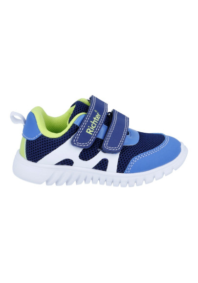 Lehké tenisky v kombinaci textilu a syntetiky. Flexibilní podešev a rychlé zapínání na suchý zip jsou předností tohoto modelu sportovních bot. Děti si je zamilují pro jejich lehkost a pohodlí.