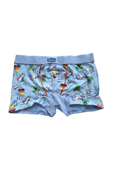 Chlapecké boxerky italského výrobce Gaselino. Boxerky mají obšitou gumu v pase a jsou bez švu na zadním dílu. Přední díl je potištěný barevnými motivy, zadní díl je jednobarevný.