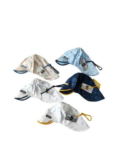 Klobouček, vzadu prodloužený na zátylek. 100 % bavlna.