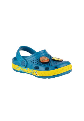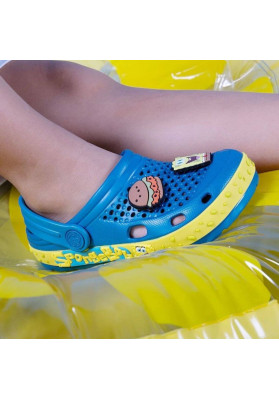 Chlapecké clogsy COQUI LINDO v modré barvě z nové kolekce SpongeBoba. Mají hravý design s ozdobnými prvky na svršku, které korespondují s hlavním hrdinou SpongeBobem. Obuv je vyrobena z odlehčeného materiálu CoquiAir. Ve svršku jsou ventilační otvory pro prodyšnost a patní pásek, který zajistí pevné držení na noze. Protiskluzová podrážka.