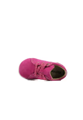 Dívčí kožené boty pro první krůčky - capáčky. Mají maximálně ohebnou podešev, zpevněný opatek a jsou lehoučké. Díky šněrování bude bota krásně sedět na nožce. Špička je kulatá a dostatečně prostorná. Vhodné pro užší a normální nožku.