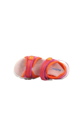 Sportovní dívčí sandálky v krásných barvách. Zapínání na suchý zip a možnost regulace šířky na nártu. Stélka je kožená, podešev lehká a ohebná.