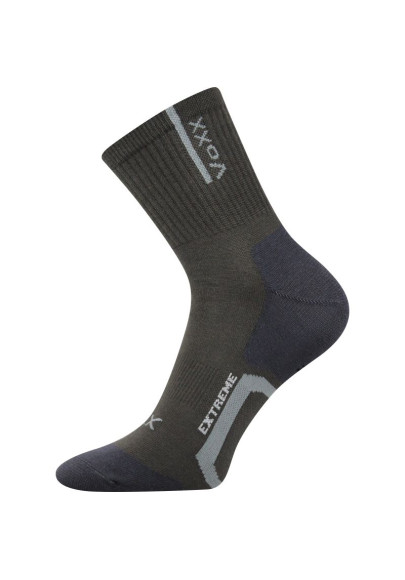 Bavlněné ponožky s ionty stříbra, které působí antibakteriálně a značně omezuje tvorbu bakterií a plísní. Bakterie jsou stříbrem přirozeně zničeny a nedochází pak k tvorbě zápachu. Sportovní ponožky jsou s elastickou bandáží na nártu, zabraňující přetočení v obuvi. Volný neškrtící lem a zvýšený odvod potu jsou vlastnosti, které oceníte jak při celodenním nošení, tak při jakémkoliv sportovním vyžití. Sportovní ponožky v teplotní třídě A jsou vhodné do rozmezí teplot od +10°C do +35°C, můžete nosit klidně po celý den. Ponožky jsou dostupné i v nadměrné velikosti.
