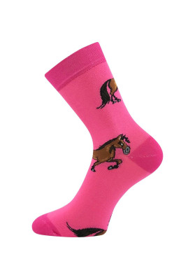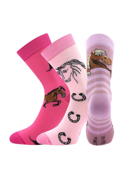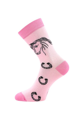 Dívčí obrázkové ponožky Lonka® HORSIK jsou slabé ponožky z přírodní bavlny s motivem koníků a podkoviček.