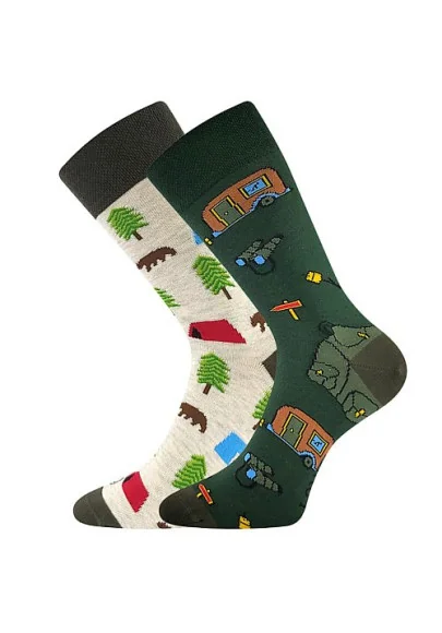 unisex obrázkové "trendy" ponožky z česané bavlny, jemný nestahující pique lem, CRAZY párování - každá ponožka je jiná:-)