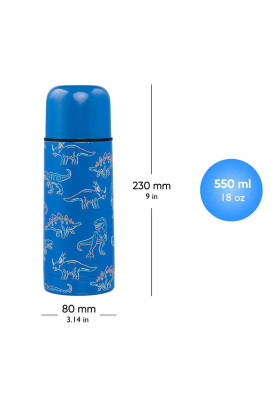 Stylová termoláhev s motivem dinosaura a šroubovacím víčkem.