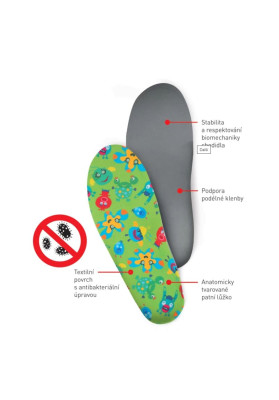Dětská noha je ve svém vývoji ohrožena mnoha negativními vlivy (nevhodná obuv, nedostatečný pohyb, nadměrná tělesná námaha). Ortopedická vložka pomáhá vyrovnat dolní končetiny do správného osového postavení. Podepírá podélnou klenbu a zajišťuje stabilitu uložením paty do anatomicky tvarovaného lůžka.